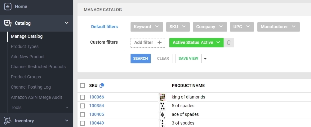 Updating your products in Sellercloud is simple, go to your Catalog Module, select Manage Catalog, use your default filters and custom filters to sort and search for your SKUs, and then select the relevant product to open the detailed view.